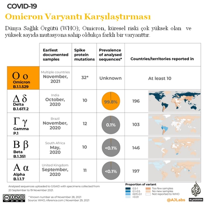 Omicron varyantı salgının merkez üssü olan; Güney Afrika Tshwane Bölgesi Omicron Varyantı Hasta Profili’ne göre; son iki hafta hastaneye başvuruların %80’i, büyük çoğunluğu oksijen desteği gerektirmeyen 50 yaşın altındaki kişilerdir.