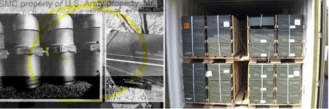 ABD Ordusu Suç Araştırma Komutanlığı tarafından 09 Şubat 2021 tarihinde paylaşılan 2017 yılına ait fotoğraf, Letterkenny Ordu Deposuna gelen patlayıcılarla dolu konteynerde hırsızlık yapıldığına dair izler görülmüştür. Yapılan incelemede; Birleşik Devletler Deniz Kuvvetleri Komutanlığı’na ait 32 adet 40 mm çaplı M430A1 modeli mühimmatın eksik olduğu belirlenmiştir. Kaynak: U.S. Army Criminal Investigation Command via AP
