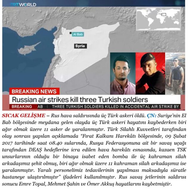 Erdoğan’ın iyimserliğine rağmen Orta Doğu konusundaki Türk-Rus işbirliği müphem olabilir. 2017 yılının Şubat ayında Türk askerlerinin, Suriye’nin kuzeyinde gerçekleşen bir Rus hava saldırısında kazayla öldürülmesi, iki ülkenin birbirine düşman unsurları desteklediği çatışmalarda, her ne kadar aktif bir şekilde çatışmaları sonlandırma ve hatta işbirliği gayretinde olsalar da kazaların olabileceğini net bir şekilde göstermiştir.