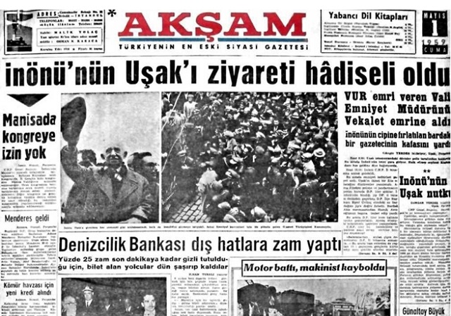 İnönü şehir merkezine girdiğinde ise Uşak Demokrat Parti İl Başkanı Eşref Öğün elindeki çay bardağını eski Cumhurbaşkanı İsmet İnönü’ye fırlattı.