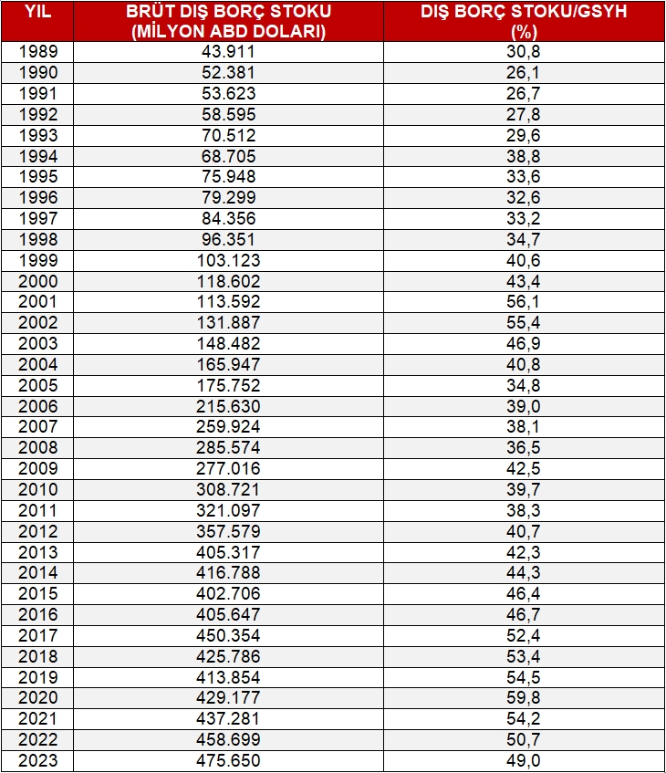 TÜRKİYE BRÜT DIŞ BORÇ STOKU