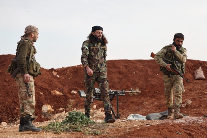Türkiye’nin desteklediği Suriyeli savaşçılar, Halep kuzeyinde yer alan Marea kentinde, ABD destekli Kürt-Arap ittifakı, Suriye Demokratik Güçleri kontrolündeki bölgede cephe hattı üzerinde görülürken, 06 Aralık 2022. Fotoğraf: OMAR HAJ KADOUR/AFP via Getty Images