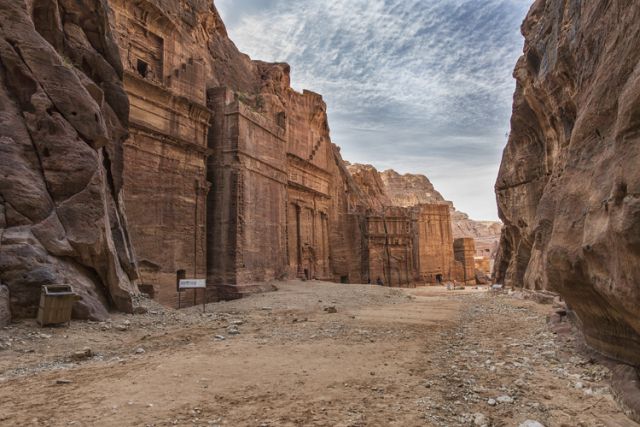 Geçidin en dar yeri Petra’ya giriş yapılan yer. İki kayanın arasından baktığınızda Petra’nın sembolü olmuş Hazine’nin bir kısmını çizgi gibi görüyorsunuz. Yaklaştıkça da genişliyor, genişliyor ve geçit bitiyor, Petra’ya ilk adımınızı atıyorsunuz.