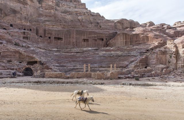 Hazine’den sağa doğru ilerlediğinizde dar bir geçitten geçip geniş bir alana çıkıyor ve yaşam alanına giriyorsunuz. Burada Nebatilerden kalma tapınaklar, yerleşim yerleri ile Romalılar’ın yaptıkları binalar var. Romalılar tarafından 1. yy’da kayalara oyularak yapılmış amfitiyatro 7.000 kişilik.