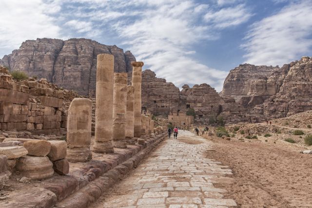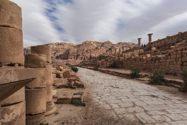 Yürümeye devam edildiğinde şehrin merkezi sayılan, sütunlu yola ulaşılıyor. Bir zamanlar hareketli kalabalıkların bu büyük ticaret merkezine doğru akın akın geldiklerini ve çıkardıkları sesleri hayal ederek yürüyorum. Gerçekten Petra, insanı bulunduğu zamandan hayal alemine götüren sihirli bir yer. Bu kadar muhteşem eserlerin yapıldığı bu yerde muhakkak ki insanların çoğunun yaşamları iyi ve kendileri de mutlu idiler. Bu eserler de, ancak bu durumda olan toplumlar tarafından yaratılır.
