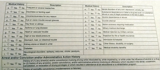 Burada önemli olan husus; tek bir içkili araba kullanma olayını dahi dürüstçe rapor etmektir, çünkü gizlemek pilotun alkol bağımlısı olduğunu gizlediği yönündeki şüpheleri artıracaktır. Bunun da ötesinde, FAA Form 8500 Havacı Tıbbi Muayene formunda verilen yanlış bilgi, pilotun 250,000 ABD doları para cezası, beş yıla kadar hapis cezası veya her ikisiyle cezalandırılmasına da yol açabilir.