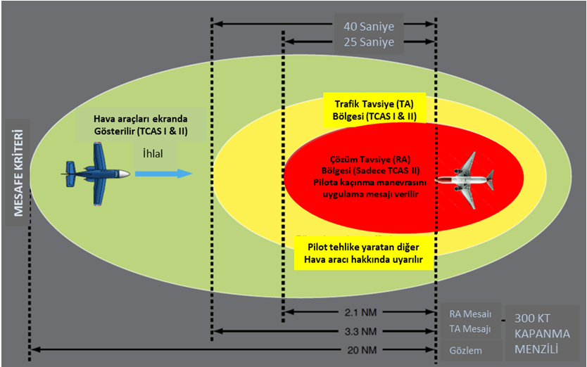 Uçuş emniyetini artırmak ve hava araçlarının havada çarpışmalarını önlemek maksadıyla trafik ikaz ve çarpışmadan kaçınma sistemlerinin geliştirilme çalışmalarına 1950’li yıllarda başlanmıştır. Birbirine doğru yaklaşmakta olan iki hava aracına TCAS tarafından verilen Çözüm Tavsiye mesaj örnekleri aşağıdaki şekilde görülmektedir.