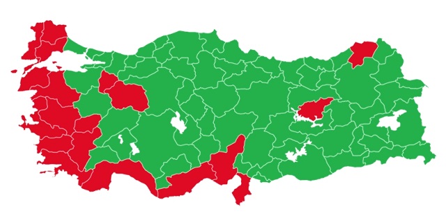 Yukarıdaki haritada da görüldüğü gibi AKP’nin kalesi olan Anadolu’nun merkezindeki muhafazakâr seçmenler anayasa değişiklikleri yönünde oy kullanırken, laik muhalefetin yaşadığı İstanbul, Ankara ve Ege kıyıları ile ülkenin güneydoğusunda bulunan Kürtlerin çoğunlukta olduğu kentler anayasa değişiklerinin aleyhinde oy kullanmıştır. CHP ve HDP; oy verme işlemlerindeki usulsüzlükler nedeniyle (MÜHÜRSÜZ OY PUSULALARININ GEÇERLİ KABUL EDİLMESİ) Yüksek Seçim Kuruluna başvurarak referandumun iptalini talep etmiş, ancak bu çabaları sonuçsuz kalmıştır.