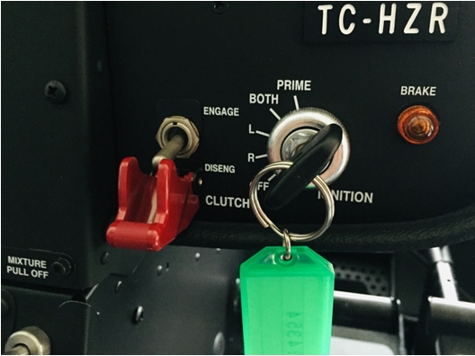 Motor çalıştırma ve kalkış öncesi kontroller esnasında hız aşımından kaçınmak maksadıyla; özellikle starter anahtarına basılırken, manyeto kontrolü, Governor sistem hızlanması ve düşük RPM kontrolleri esnasında sol el daima gaz kolunda olmalıdır.