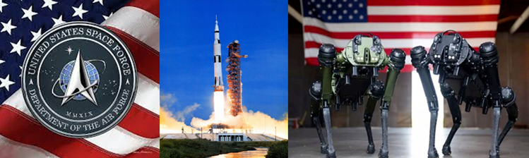 ABD Uzay Kuvveti tarafından Cape Canaveral fırlatma üssünde devriye görevinde kullanılan robot köpekler. Robot köpekleri imal eden Ghost Robotics firması, otonom olarak hareket eden robot köpeklere keskin nişancı tüfeği yerleştirmiştir. Fotoğraf: Samuel Becker, U.S. Space Force,