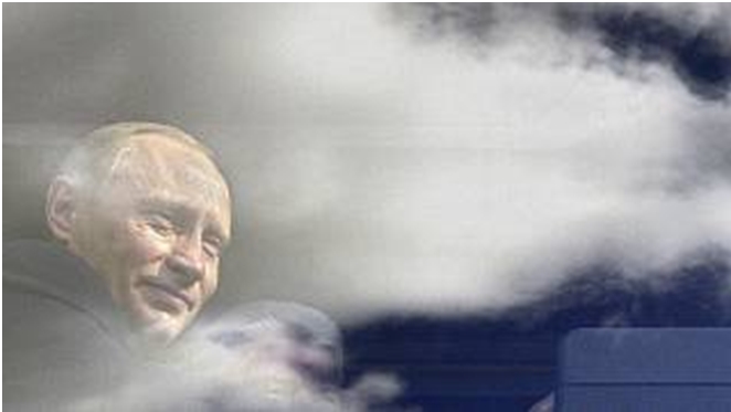Kaliningrad ziyareti esnasında çekilen Rusya Devlet Başkanı Vladimir Putin’in gökyüzü ve bulutların yansıdığı bir otobüs penceresinden görüntüsü, Temmuz 2015. Kaynak: AP Photo