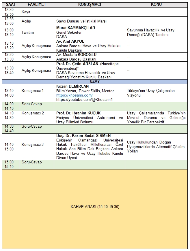 Savunma Havacılık ve Uzay Derneği (DASA)-Ankara Barosu Hava ve Uzay Hukuku Kurulu-Hacettepe Üniversitesi Adli Bilişim Araştırma ve Uygulama Merkezi-Ankara Barosu Ceza Hukuku Enstitüsü Ortak Sempozyumu