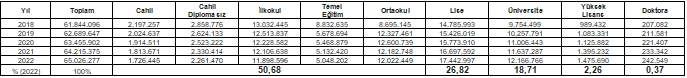 2018-2022 15 Yaş Üstü Eğitim Seviyesi