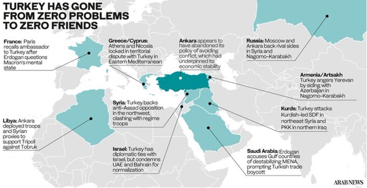 AKP’nin değişim güçlerini kucaklaması ve özellikle de Müslüman Kardeşler örgütüne olan desteği Türkiye’nin Mısır ve Birleşik Arap Emirlikleri ile olan ilişkilerini bozmuştur. Katar ve Türkiye bunun tam tersine, derinleşen ekonomik ve askeri ilişkilere dayanan ve siyasal İslam’ın bölgenin gelişmesinde çok önemli bir rol oynadığı görüşünü paylaşan gerçek bir stratejik ortaklık oluşturmaktadır. Türkiye ile Arap devletleri arasındaki karmaşık ilişkiler değişik senaryolar altında gelişebilir veya kötüye gidebilir, fakat Birleşik Devletler dış siyaset ve güvenlik çıkarlarının geliştirilmesi için yapılabilecekleri kısıtlayacaktır.