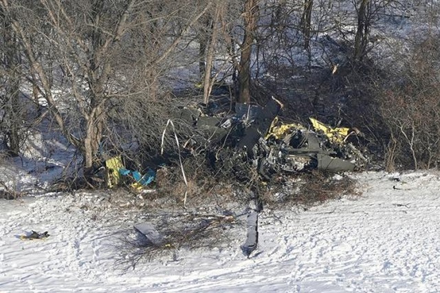 21 Ocak 2021 tarihinde düşen UH-60 Black Hawk sıhhi tahliye helikopterinin enkazına ait görüntü, Mendon New York. Kazada üç ulusal Muhafız personeli hayatlarını kaybetmiştir. Fotoğraf: Tina MacIntyre-Yee/Democrat & Chronicle via AP.