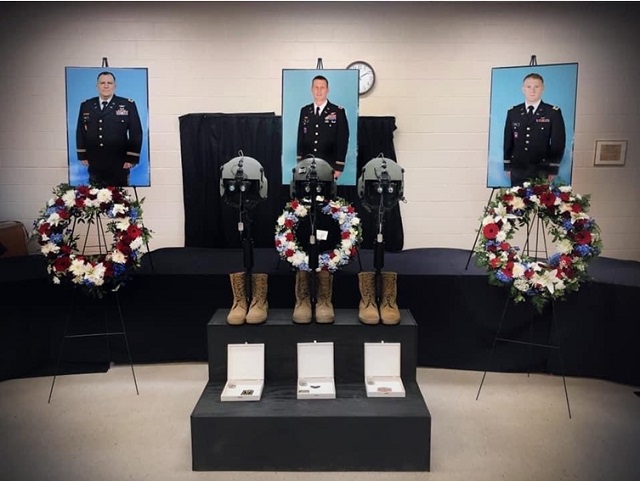 New York kentinde meydana gelen helikopter kazasında hayatlarını kaybeden, Rochester merkezli 171’inci Genel Destek Havacılık Alayı, 1’nci Tabur, C Bölüğü personeli için düzenlenen anma sergisinden bir görüntü. Fotoğraf: National Guard