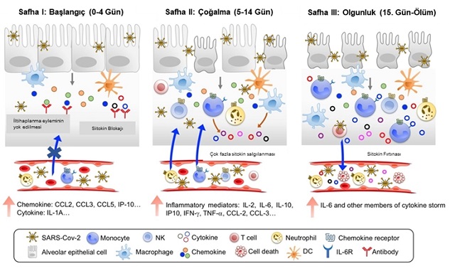 Zarar veren bu aşırı reaksiyonlara tıp literatüründe sitokin fırtınaları adı verilmektedir. Sitokin fırtınaları; 1918 grip salgını, H5N1 kuş gribi patlamaları ve 2003 SARS salgınındaki birçok ölümlerin sorumlusudur. Ve muhtemelen en ağır COVID-19 vakalarının sorumlusu da sitokin fırtınalarıdır. Yale Tıp Akademisinden Akiko Iwasaki, virüslerin insan ev sahiplerine adapte olmaları için zamana ihtiyaçları duyduklarını, insan vücuduna ilk girdiklerinde ne yaptıklarını bilmediklerini ve bu tepkileri öğrenme eğiliminde olduklarını ifade etmektedir.