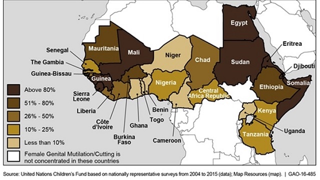 Kadın ve kızların genital organlarının görünürde kültürel ve dini nedenlere dayandırılarak vahşice kesilmesi, aşağıdaki haritada görülen 29 ülkede yoğunlaşmış durumdadır. 2009 yılından beri Şeriat yasalarının uygulandığı Somali, %98 oranıyla kadın ve kızların genital organlarının kesildiği ülkelerin en üst sırasında yer almaktadır. Bu vahşi uygulamaya sadece Afrika ve Orta Doğu ülkelerinde rastlanmamaktadır. Birleşik Devletlerde dahi yaklaşık 507,000 kadın ve kız çocuğunun genital organlarının kesildiği veya kesilme riski altında olduğu tahmin edilmektedir. Avrupa’da ise bu rakam 680,000 civarındadır.