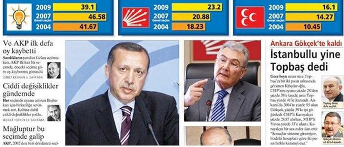Şimdi, 2009, daha dünkü seçimlerden bir tanesi değil mi? Belediyeler il genel meclisi oylarının nispeti yüzde 38,8. Allah Allah, Türkiye’deki bütün belediyeleri kazandığınızda aldığınız oy yüzde 38,8; İsmet Paşa’nın yerle yeksan oldu diye düşündüğünüz seçimde aldığı oy yüzde 39,9! O bile bundan büyük, öyle değil mi?