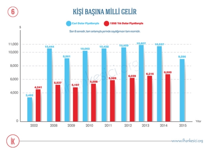 Üç: Yine, buna bağlı olmak üzere, “Türkiye’de kişi başına düşen millî geliri dörde katladık.”