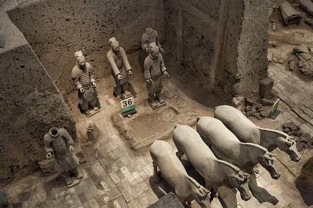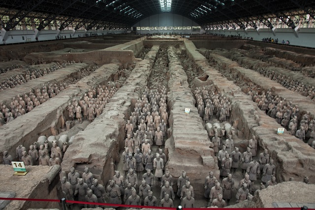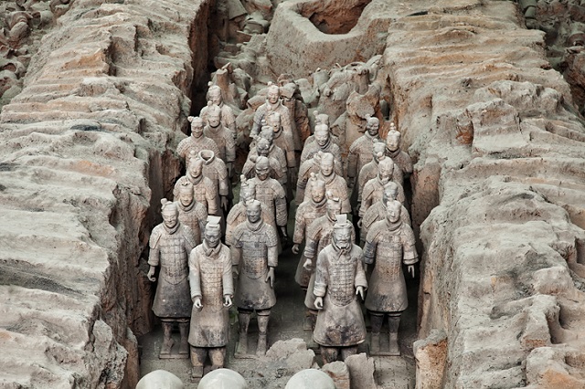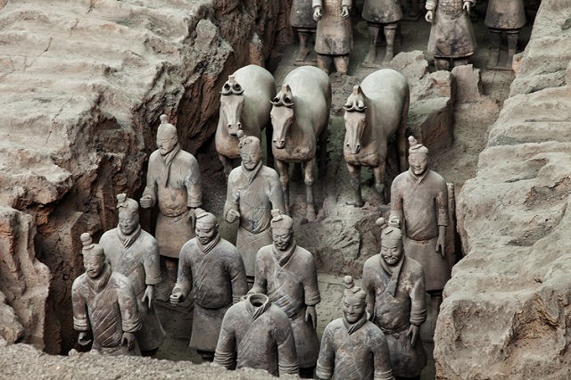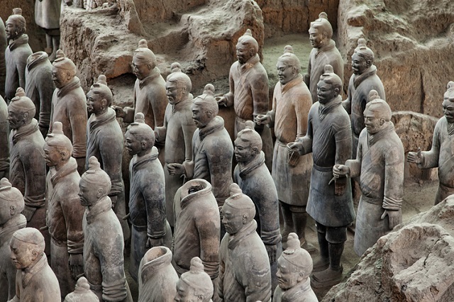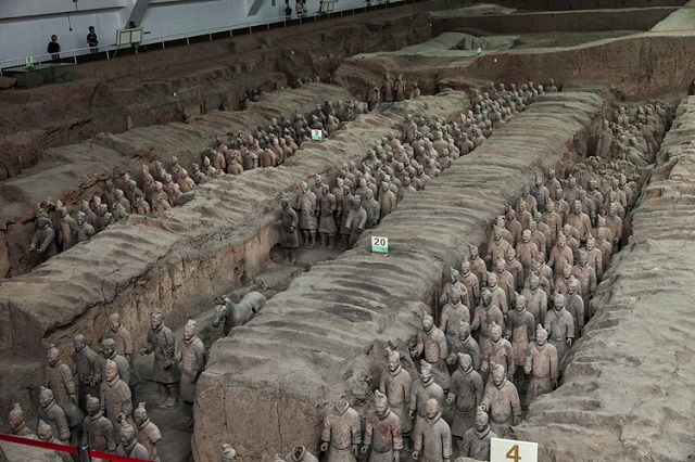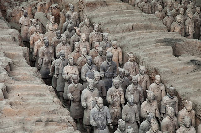 Heykeller, asıl adı Ying Zheng olan ve ilk Çin İmparatoru manasına gelen Qin Shi Huang için yaptırılmış. 2800 yıllık bir geçmişi var. Yapılan heykellerin sayısının, yaklaşık olarak 7000 savaşcı, 130 tahta savaş arabası, 500 yük atı olduğu tahmin ediliyor. Bunlardan yer üstüne 20 at arabası, 100 savaş arabası ve 2000’e yakın savaşçı çıkarılmış. Çalışmalar halen devam ediyor.