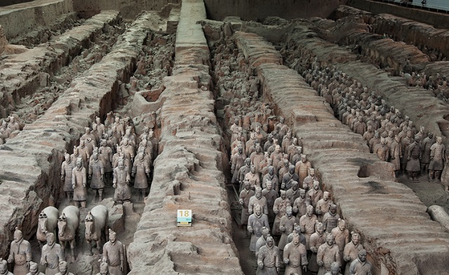 Çin gezimin bugünkü bölümünde görmeyi hep hayal ettiğim bir yeri ziyaret edeceğim. Son derece önemli bir tarihi buluntu. Bulunduğu zaman kendisinden çok söz edilmiş ve dünyanın büyük ilgisini çekmiş tarihi bir mekan. Şu anda bile bu ilgi, aynı hızla devam ediyor. Terracotta Savaşçıları ve Atları’na gidiyorum. Bu müzeye ulaştığımda, giriş biletlerimi hemen alıp bir an evvel bu heykelleri görmek için ileriye doğru atılıyorum. Ancak ilerlemem hiç de hızlı olmuyor. Yoğun bir ziyaretçi kütlesi bana engel oluyor. Yapabileceğimin en güzeli, sabırla biraz beklemek. Ben de bunu yapıyorum.