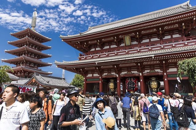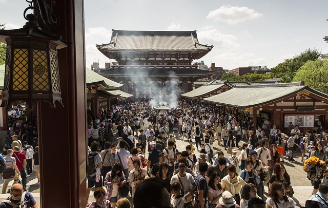 Bu tapınak, Japonya’da bulunan en büyük ve en eski Budist tapınaklarından birisi. İnsanı büyüleyen bir yapısı var. Japonya’da diğer tapınaklarda olduğu gibi yıkılarak yeniden inşa edilmiş. Şu andaki görünümü ile turist ve Japonların cazibe merkezi. Kalabalık da, bunu doğruluyor. Yapımı MS 645 yıllarına kadar giden bu tapınağa üzerinde kırmızı bir çift büyük kâğıt fenerin asılı olduğu Kaminarimon (Yıldırım Tanrısı kapısı)’dan giriliyor. Bundan sonra uzun ve iki taraflı hatıra eşya ve yiyecek satan küçük dükkânların sıralandığı bir yolda yürümek durumundasınız. Bu yol bittiğinde bir meydana çıkılıyor. Meydanın ortasında büyük bronzdan yapılmış tütsü ocağı ile karşılaşılıyor. Kalabalık ama birbirini ittiren ve kaktıran yok. Herkes büyük bir sükûnetle sırasını bekliyor ve sırası gelen de tütsüsünü yakıyor. Japonlar, tütsüden çıkan dumanları ellerinin de yardımıyla içlerine çekmeye çalışıyorlar. Bunu yapanların bir yıl hastalanmayacağına inanılıyor. Japonlar, bu kadar sağlıklı ve uzun ömürlü olduklarına göre gel de inanma.