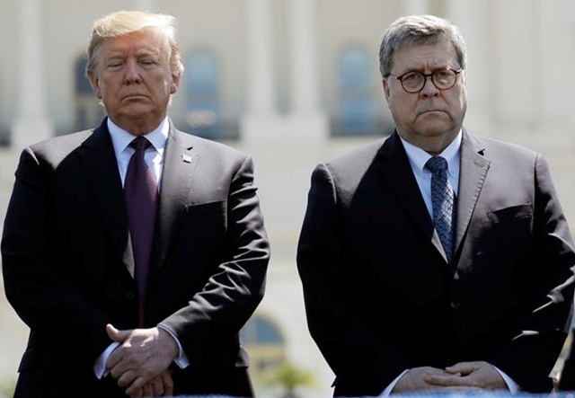 Birleşik Devletler Başkanı Bay Trump ve Savcı Berman’ın görevden uzaklaştırdığını basın yoluyla açıklayan ABD Adalet Bakanı Bay Barr. Kaynak: USA TODAY