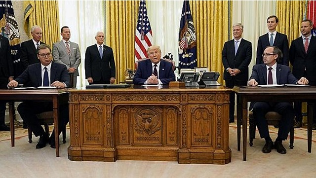 Birleşik Devletler Başkanı Donald Trump, Sırbistan Cumhurbaşkanı Aleksandar Vučić ve Kosova Başbakanı Avdullah Hoti ile birlikte Beyaz Ev’de düzenlenen basın konferansında, iki ülke arasındaki ekonomik ilişkilerin normalleşmesi konusunda anlaşıldığını açıklamıştır. Beyaz Ev’den yapılan açıklamaya göre bu tarihi bir başarıdır ve yeni iş alanları yaratma ile ekonomik büyüme üzerine odaklanılarak iki ülkenin anlaşması sağlanmıştır. Başkan Trump, kimsenin aklına dahi gelmeyen bu anlaşmanın imzalanmasının büyük bir atılım olduğunu ifade etmiştir.