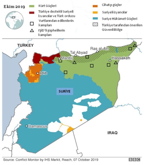 Üçüncü olarak da Birleşik Devletler rejimin nihai askeri zafer kazanmasını engellemek için çalışmaktadır. Savaş giderek yavaşlamasına rağmen Assad ve müttefikleri halen Suriye’nin sadece %60’ını kontrol edebilmektedir. Ülke topraklarının yaklaşık %15’nin kontrolü Türkler ve Sünni İslamcı müttefiklerinin kontrolündedir ve bu bölgelerde, Suriye’nin perişan olmuş para birimi yerine Türk lirası kullanılmaya başlanmıştır. Ülkenin %25’i de ABD ile birlikte hareket eden Kürt liderliğindeki Suriye Demokratik Güçleri’nin kontrolü altındadır. Birleşik Devletler rejime karşı mücadelesinde ve bu yılın mart ayında Rusya liderliğinde yapılan bir saldırı karşısında Türkiye’yi desteklemiştir. Ve Birleşik Devletler Başkanı Donald Trump’ın 2019 yılı Ekim ayında Suriye’den çekilme yönünde attığı Twitter mesajının aksine ABD güçleri halen Kürtlerin hâkimiyetindeki alanlarda varlığını sürdürmektedir.