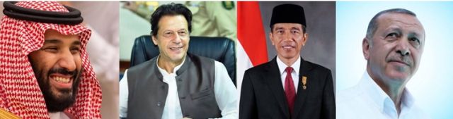 Soldan sağa: Suudi Veliaht Prensi Muhammad bin-Salman, Pakistan Başbakanı Imran Khan, Endonezya Devlet Başkanı Joko Widodo ve Türkiye Cumhurbaşkanı Recep Tayyip Erdoğan.