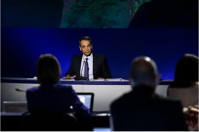 Yunanistan Başbakanı Kyriakos Mitsotakis 13 Eylül 2020 tarihinde Yunanistan’ın Selanik kentinde düzenlediği bir basın toplantısında ülkenin savunma imkân ve kabiliyetlerini geliştirmeyle ilgili planlarını açıklamıştır. Doğu Akdeniz’de Türkiye ile doğal kaynaklar konusunda yaşanan gerginliğin sürdüğü bir ortamda yaptığı açıklamasında Başbakan Mitsotakis; yeni savaş uçakları, firkateynler, helikopterler ve silah sistemlerinin tedarik edileceğini ifade etmiştir. Kaynak: Giannis Papanikos/AP.