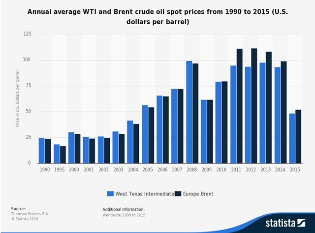 Grafiğe bakıldığında, 2014 yılında petrol fiyatlarının düşmesiyle birlikte Rusya ekonomik krize girmiştir. Petrol fiyatlarının düşürülmesi, Rusya’nın Kırım’ı ilhak etmesi ve Rus ordusunun Ukrayna’ya askeri müdahelesi kapsamında bu ülkeye uygulananan ekonomik yaptırımlardan başka bir şey değildir. Rusya’nın ana ihraç ürünü olan ham petrol fiyatı, en yüksek değeri olan Haziran 2014 rakamlarına göre 16 Aralık 2014 günü, % 50 oranında değer kaybetmiştir.