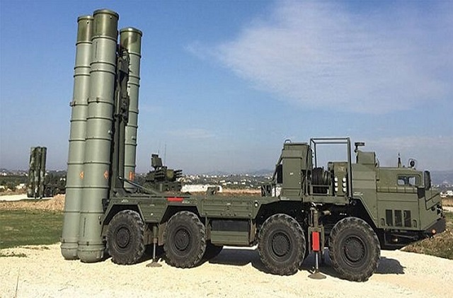 Suriye’deki Hmeymim hava üssünde görülen bir S-400 hava savunma füze sistemi. Kaynak: Sputnik