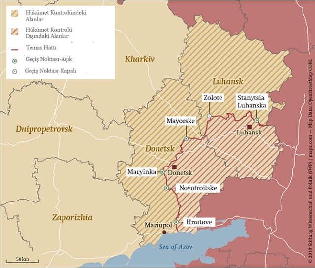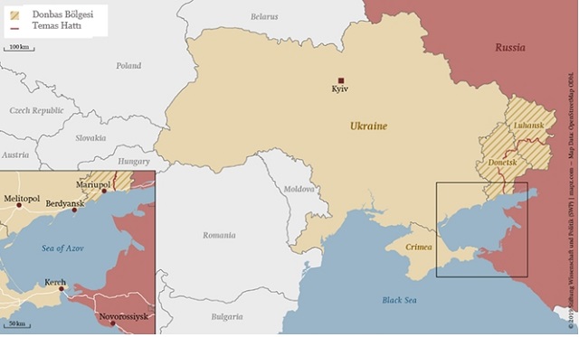 Kendi kendilerine bağımsızlık ilan eden Donetsk Halk Cumhuriyeti askerleri, Ağustos 2020’de Rusya yanlıların kontrolünde olan Donetsk kenti yakınlarında bir tatbikat esnasında. 28 Ocak 2021 tarihinde Donetsk Halk Cumhuriyeti liderliği tarafından düzenlenen bir toplantıda Rusya devlet televizyon kanalı Russia Today baş editörü Margarita Simonyan; Donetsk halkının evlerinde yaşamak ve büyük ve cömert anavatanın, Rusya Ana’nın bir parçası olmak istediğini ilan etmiştir. Kaynak: RKK International Centre for Defence and Security.