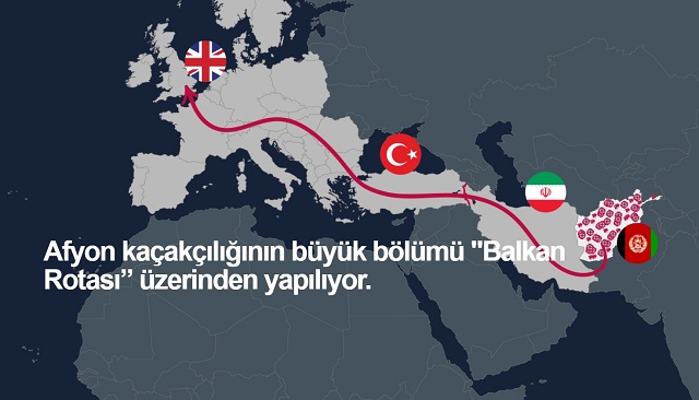 Avrupa’ya giren eroininin yüzde 80’i Türkiye üzerinden geçiyor ve neredeyse tamamı Türkiye’ye İran’dan sokuluyor. Narkotik Daire Başkanlığı verilerine göre, 2017 yılı itibarıyla Türkiye uyuşturucu ile mücadeleye 1 Milyar TL harcadı.