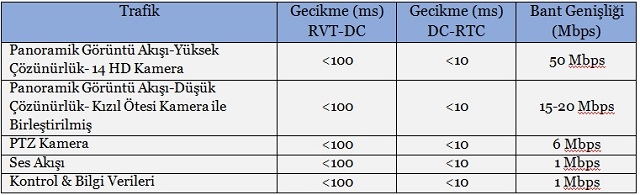 Uzak kule uygulamasının fonksiyonelliğini etkileyen kritik faktörler; bant genişliği ve gecikme süresidir. Hata oranları ve sapma değerleri de ortak değerlerden büyük oranda sapma göstermeleri durumunda kritik bir rol oynayabilirler. Bant genişliği ve etkinliği için birkaç önemli nokta bulunmaktadır. Bunlardan ilki, bant genişliğinin doğru hesaplanmasıdır. Çok uygulamalı bir network genel bant genişliği, network kapsamındaki istasyon sayısı ve gönderilecek veya alınacak trafiğe bağlıdır. Bant genişliği hesaplamasında en büyük etki panoramik görüntü akışıdır. Panoramik görüntü akışında bant genişliğinin farklı olması, kamera sayısı, sıkıştırma kalitesi, resim karesi hızı ve çözünürlük gibi farklı parametrelerden kaynaklanmaktadır. İhtiyaç duyulan bant genişliğini değerlendirmek için aşağıda sunulan tabloda bazı tipik bant genişlik ve gecikme süresi gereksinimleri ve panoramik görüntü akışı için iki farklı seçenek sunulmaktadır.