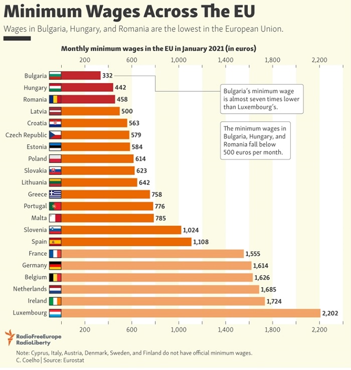 İşin daha kötüsü çalışanımızın düştüğü durum. Bugün asgari ücret brüt 3500 TL yani 350 dolar. Almanya’da asgari ücret ne kadar? 1500 avro. Kabaca bizdeki asgari ücretin 5 katı. Yani bizim işçimiz 5 kat daha ucuza çalışıyor.