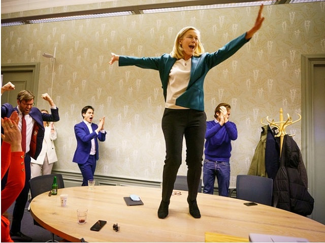 1966 yılında kurulan sosyal liberal ve ilerici D66 (Demokratlar 66) Partisi genel başkanı ve Hollanda Dışişleri Bakanı Sigrid Kaag, seçim sonrası yaptığı Masa Dansı esnasında görülürken. Kaynak: AVIATION ANALYSIS