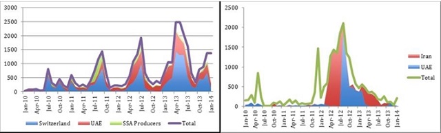 Dubai Çarşısı, saf altın mücevherlerin en düşük fiyatla satışı ile ünlüdür ve bunun nedeni de kısmen de olsa değerli madenlerin çıkarıldığı Afrika ülkelerine hiçbir vergi veya üretim payı ödenmemesidir. Kaynak: The Africa Report