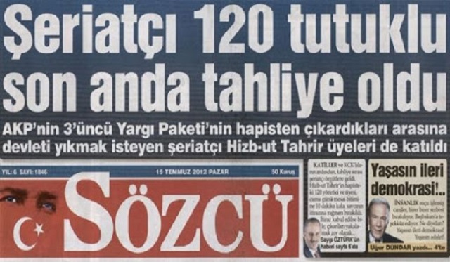 [1] Aynı konuda bir bilgiyi kendi twitter sayfamda paylaştığımda, Hizb-ut Tahrir Türkiye Medya Bürosu Başkanı Mahmut KAR mesajıma bir cevap yazarak “2012’deki paketle tahliye olan bir tek Hizb-ut Tahrir’ci olmadığını, haberin asparagas olduğunu, konunun gazete yönetimine de bildirildiğini” belirtmiştir.
