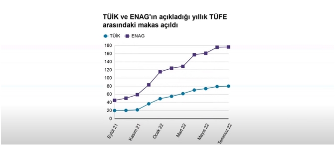 Enflasyon Araştırma Grubu (ENAG) ve TÜİK Enflasyon Hesabı Arasındaki Uçurum – ENAG başkanı Prof. Dr. Veysel Ulusoy’a göre aradaki uçurumun nedeni; ENAG’ın enflasyonu dinamik bir şekilde hesaplamasıdır. Kaynak: Karadeniz