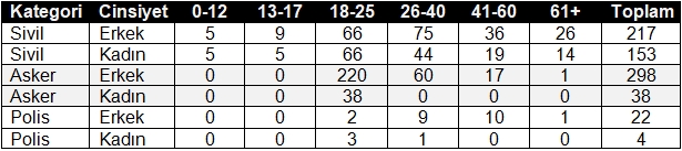 Kayıpları takip eden ve kayıt altına alan tek kurum olan, Gazze Sağlık Bakanlığı verilerine göre; 07 Ekim 2023 ila 07 Ocak 2024 tarihleri arasında ölenlerin yaklaşık %70’i kadın ve çocuklardır. Aynı dönemde 58,416 Filistinli de yaralanmıştır.