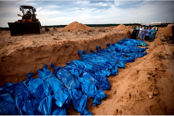 İsrail bombardımanında hayatını kaybedenlerin toprağa verilişi, 22 Kasım 2023, Khan Younis. Fotoğraf: Mohammed Dahman/AP