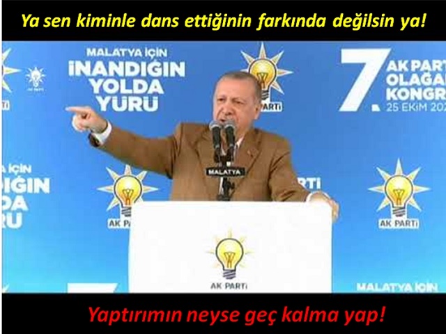 ‘‘Güz gelince bağlar döker gazeli, çok hasretlik çektim gurbet gezeli, yedi iklim dört köşeyi dolaştım, bulamadım Malatya’dan güzeli’’ dizelerini okuyarak başladığı AKP Malatya 7. Olağan İl Kongresinde, 25 Ekim 2020 tarihinde partililere hitaben yaptığı konuşmada Erdoğan; Türkiye’nin demokrasi ve kalkınma mücadelesi uzun ve meşakkatli bir süreci ifade eder. Bir yanda halka rağmen halkçılık, bir diğer yanda, güya halkının yanında olduğunu ifade ederken, halkının duygularını sömürenler. Güya ülkeyi asrileştirmek isteyen jakoben (ÇN: tepeden inmeci) bir zihniyet, diğer yanda ise gönlü ve gözü milletimizle aynı istikamete bakan bir anlayış var. Milletimizin değerlerine savaş açanlar, kimi zaman darbelerle, kimi zaman siyasi ve ekonomik krizlerle somutlaştığı şekliyle dışarıdan da destek almışlardır. Dünyanın pek çok yerinde ve bölgemizdeki kimi ülkelerde de benzer mücadeleler yaşandı. Bu ülkelerin bir kısmında, kendi tarihine, inancına, kültürüne yabancı, hatta husumet besleyen yönetimlerin yol açtığı felaketlere şahit olduk.
